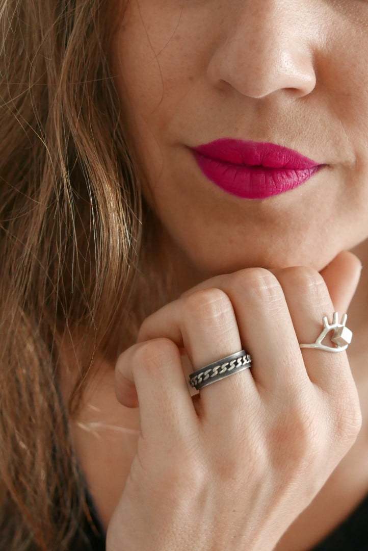 Chain Ring , Adjustable Ring, Sterling Silver Ring, Silver Ring, Rocker Jewelry, Flat Cable Chain, Oxidized Silver Ring, Oxidized Silver