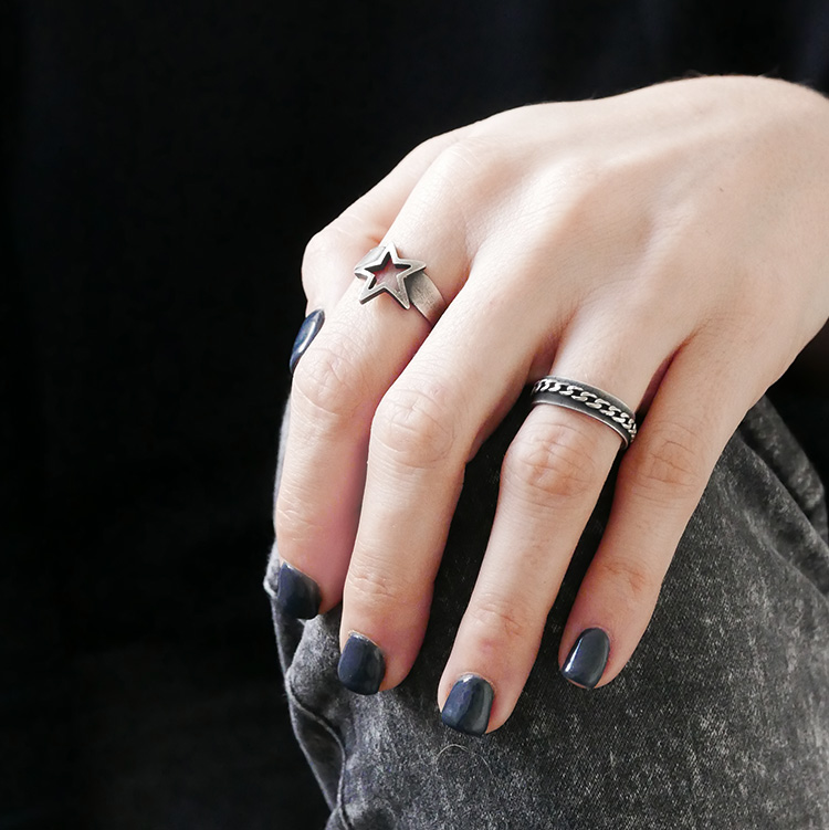 Black chain ring is adjustable and can easily fit any finger size (between 5-9 US).