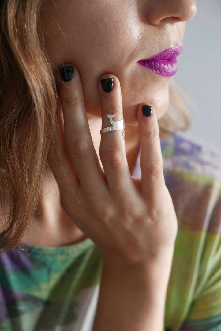 The ring is adjustable and can easily fit any finger size (between 5-9 US).