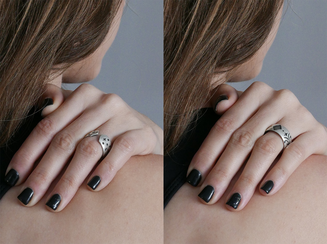 Ornament Ring, Silver Ring, Boho Ring, Adjustable Ring, Sterling Silver Ring, Floral Ring, Flip Ring, Star Ring, Two Sided Ring, Open Ring